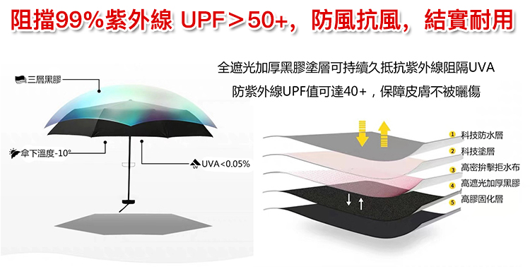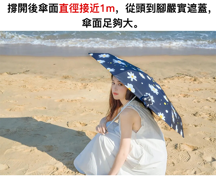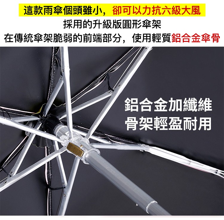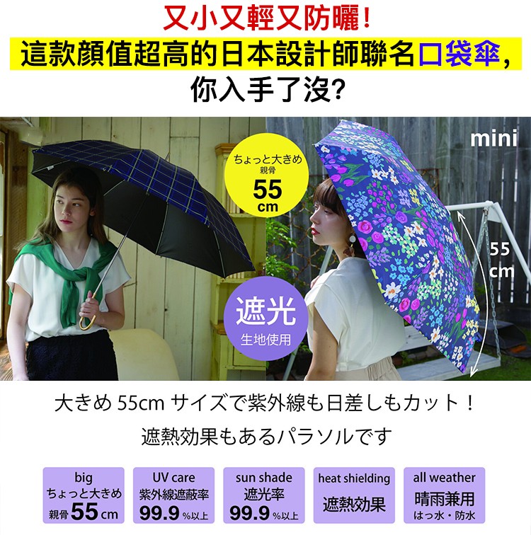 鋁合金纖維骨架,輕盈耐用,狂風再大,也吹不翻傘面!防曬UPF 50+。55cm直徑大傘面,遮光/擋雨,兩人都不怕!小巧可放入褲兜,外出攜帶方便!超夯998買一送一,再498再2入!